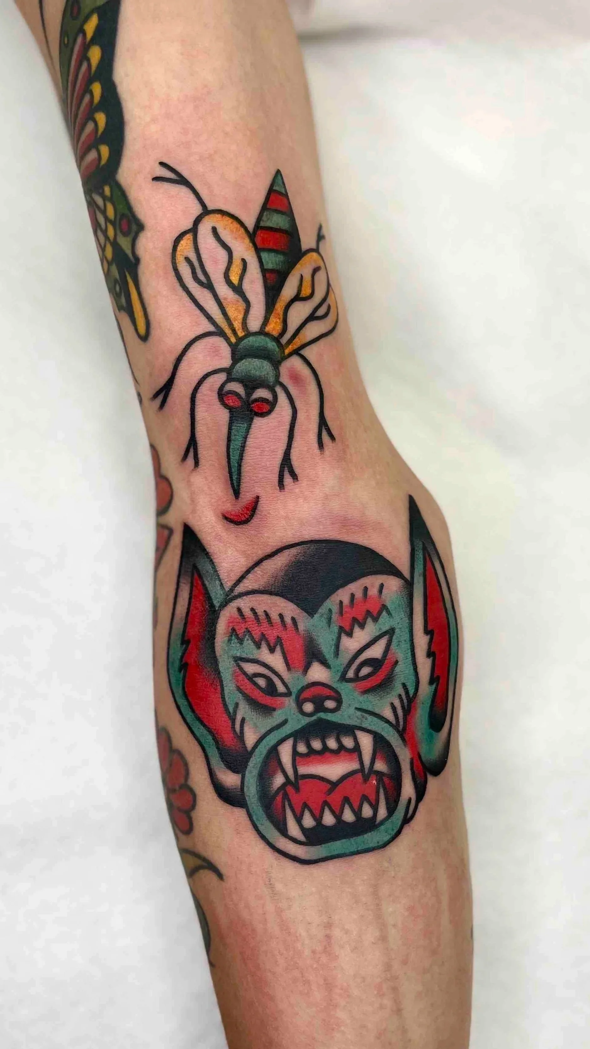 At our tattoo studio in Berlin, I focus on creating tattoos that will still look strong years from now. Bold lines act as a structure that holds the design together, even as the skin naturally changes. Solid black shading and limited color palettes help maintain clarity and prevent the tattoo from fading into the skin.